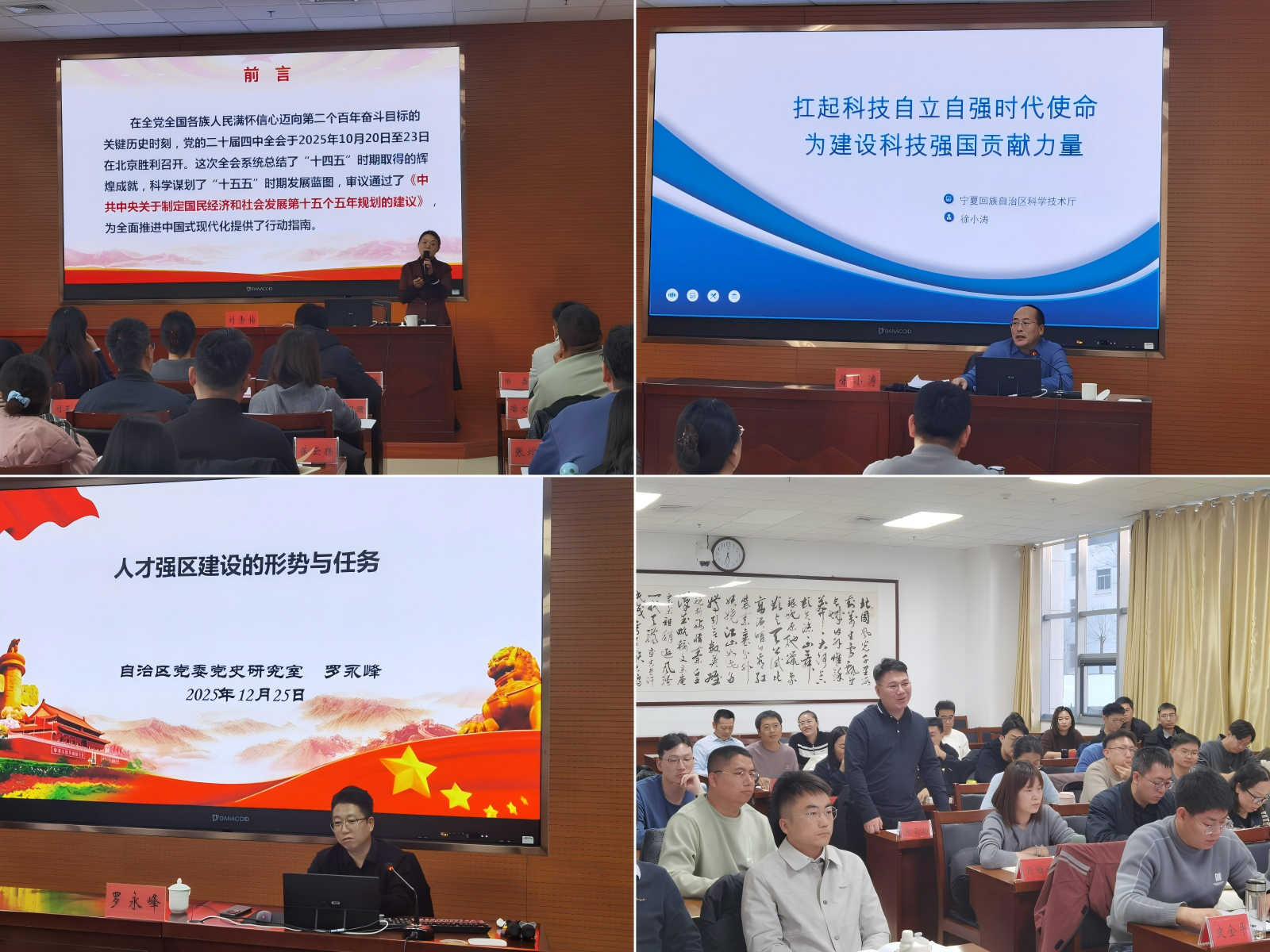 本次研修班课程涵盖习近平历次视察宁夏重要讲话精神、党的二十届四中全会精神解读、科技自立自强、人才强区建设形势任务、高校教师心理育人职责与自我关照、师德师风建设等核心内容。