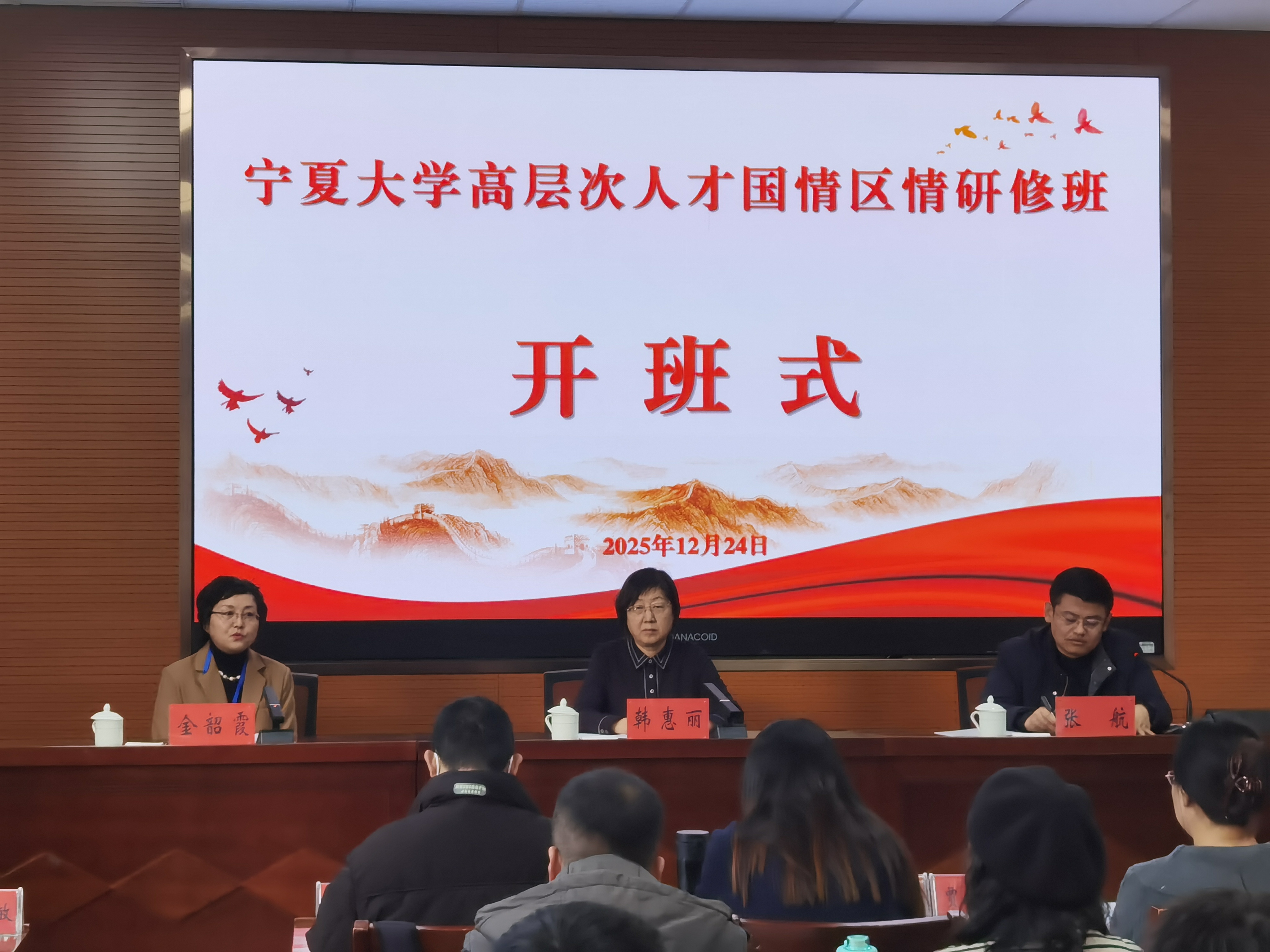 为进一步厚植爱党爱国情怀,以教育家精神铸魂强师,增强爱岗敬业的事业心与责任感,持续推进高素质专业化教师队伍建设,12月24日至26日我校依托自治区党校(宁夏行政学院)举办了2025年高层次人才国情区情研修班。50名高层次人才代表参训,校党委韩惠丽副书记出席开班式并作开班动员讲话。